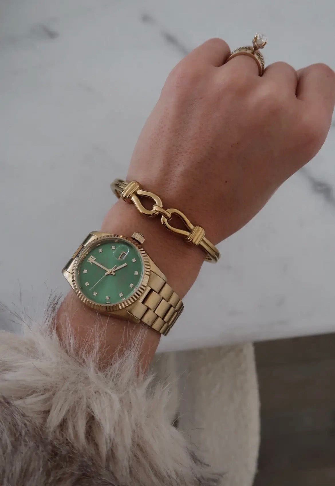 The ChanSuttPearls Abby Bracelet features an 8-inch design with a durable gold finish and a secure clasp closure. Its water-resistant properties and lifetime warranty ensure longevity and reliability, making it a practical addition to any jewelry collection. This combination of style and durability supports everyday wear while maintaining its elegance.