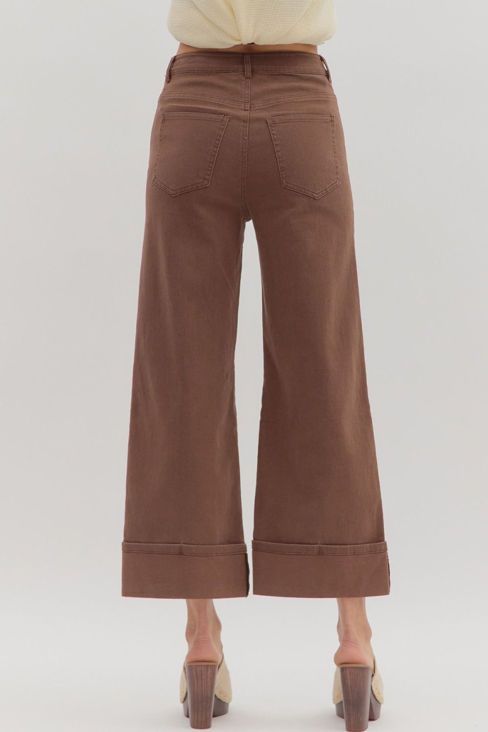 Solid mid-rise ankle length pants featuring zip-fly button closure and classic jean pockets. Unlined. Woven. Non-sheer. Lightweight.