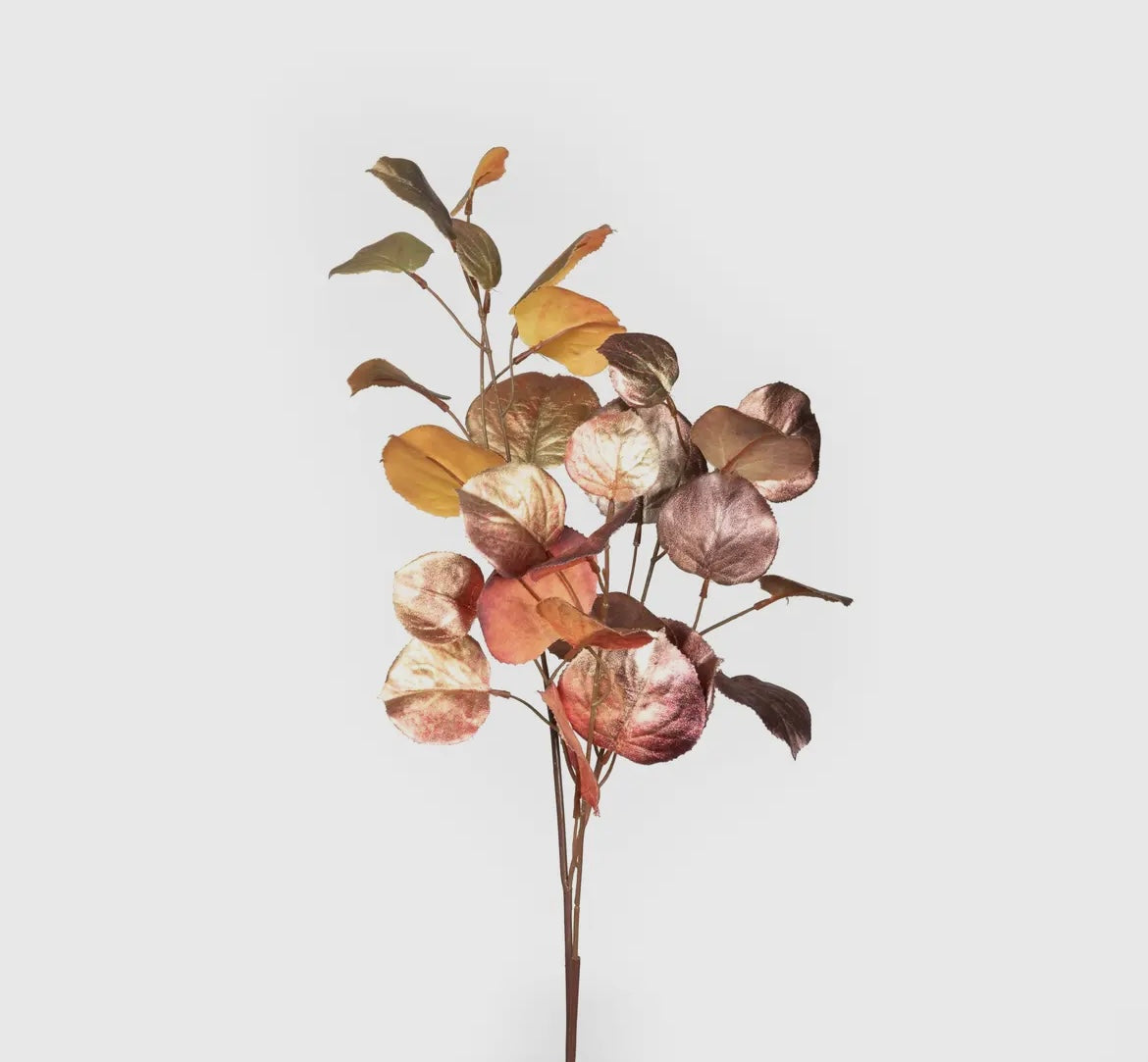 The 30-inch Ombre Leaf Spray in brown and gold offers a stunning gradient of earthy tones that transition from deep browns to lustrous golds. This faux spray is perfect for adding warmth and elegance to any decorative arrangement, whether used on its own or combined with other seasonal elements. The metallic sheen and vibrant hues create a rich, dimensional look, making it ideal for enhancing both formal and casual decor settings.